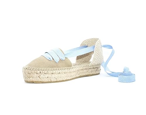 Fabricadas y diseadas en Espaa. Alpargatas Viguera Alpargatas Viguera Alpargata valenciana cintas cua alta yute ante celeste. VER MS DETALLES Azul.